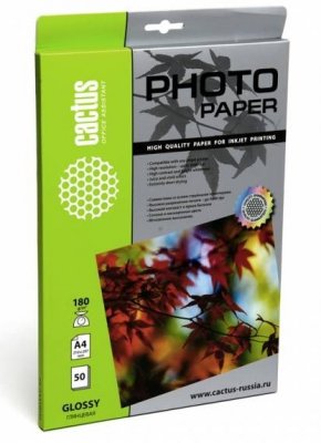 новинкаФотобумага Cactus CS-GA418050 A4/180г/м2/50л./белый глянцевое для струйной печати